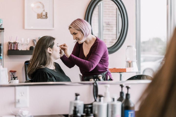 First, I had the makeup artist apply my makeup. It was fun. She used airbrush makeup which I always wanted to try and she made me feel beautiful. She made sure I was happy and was super sweet. She left me with extra tissues for my random tears and extra lipstick. I felt beautiful. The next step was my hair. We agreed ahead of time to be badass and get a Mohawk with the inflammatory breast cancer colors of pink and orange. It turned out great. I was so nervous about this. The process took time and we just enjoyed one another’s company laughing along the way, with my hairdresser sharing one hilarious story after another. All the while, the professional photographer was just snapping pictures . Nothing posed. I liked that. It’s nerve wracking enough to feel like the center of attention and getting such a dramatic change. She quietly and smoothly joked and snapped pics.